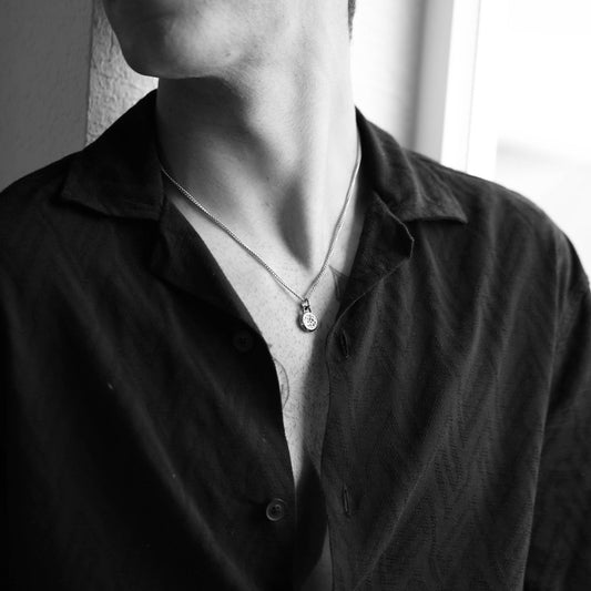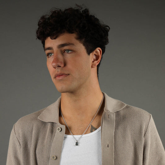 Mens Necklace Crystal Shape Pendant for Men in Sterling Silver