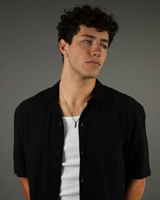 Solitaire Black Diamond Tag Pendant in Sterling Silver